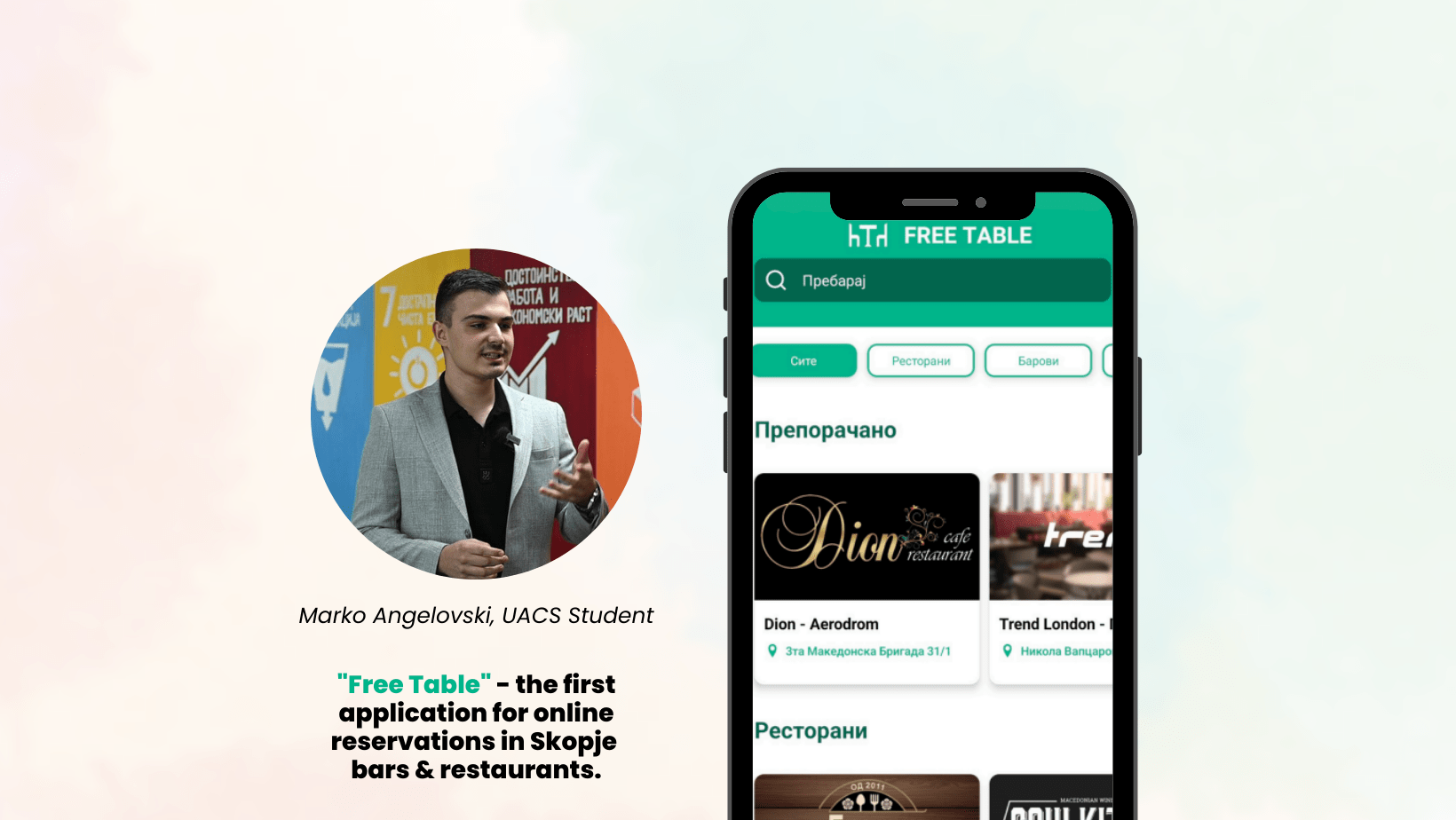 Our talented student, Marko Angelovski, has just launched FreeTable, the first mobile app for online reservations in Skopje’s restaurants, cafes, and bars Launched on World Earth Day, FreeTable is not just about easier bookings — it’s about reducing food waste and supporting sustainable practices. Through innovative solutions and dedication, Marko is showing how young entrepreneurs can make a real impact....